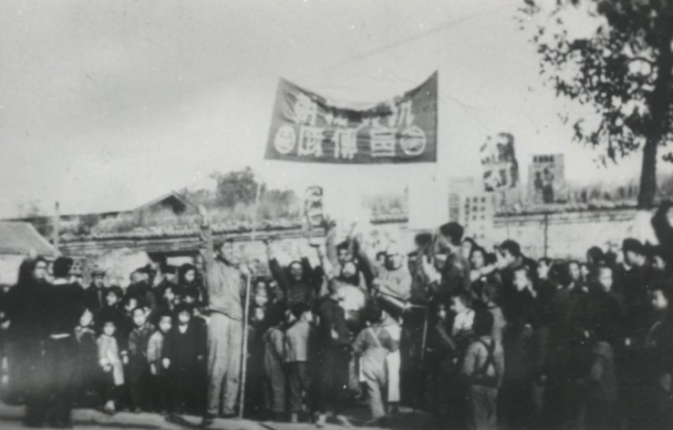 为了开展抗美援朝宣传工作,1950年11月北大停课两周,全校师生参与抗美援朝思想宣传活动。1951年4月,《人民日报》发出“必须使每一处每一人都受到抗美援朝、保家卫国的教育”号召。为了普及和深入开展抗美援朝宣传工作,北大师生员工2761人参加,占全校总人数的78%。为了更系统地组织宣传抗美援朝保家卫国思想,北大专门组建了师生联合的北京大学抗美援朝宣传队,采取漫画、标语、幻灯、活报剧、歌咏、秧歌、展览会、口头讲解等多种形式揭露美帝的侵朝恶行,宣传抗美援朝的爱国与正义。不少北大师生深入到北京东郊、西郊、南郊的49个行政村进行下乡宣传,举办抗美援朝图片展览,制作反帝爱国壁报,以生动多样的形式向普通农民宣传抗美援朝保家卫国的重要思想。一张张街头演说和下乡宣讲的黑白照片洋溢着北大师生的“抗美援朝”热情,也记录了国家危难时北大人奔走各地,奋勇向前的爱国行动。