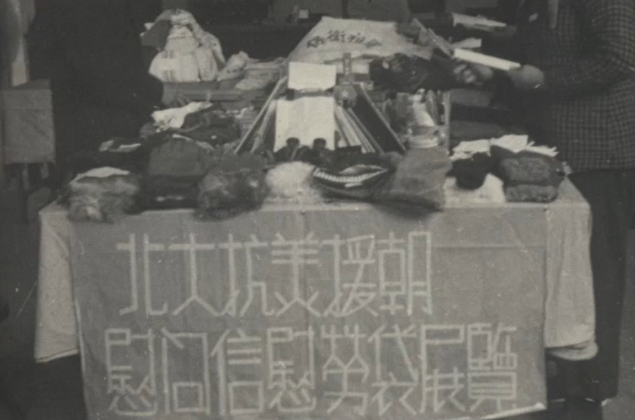 1950年11月24日,北京大学号召全校师生踊跃向朝鲜人民军和中国人民志愿军捐献慰劳品和写慰问信。北大档案馆藏的老照片还留存着北大女学生们积极写慰问信、热心给志愿军缝制棉手套、制作慰问袋的画面,包含了国内竭尽所能支持志愿军保家卫国的深刻情感和实际行动。