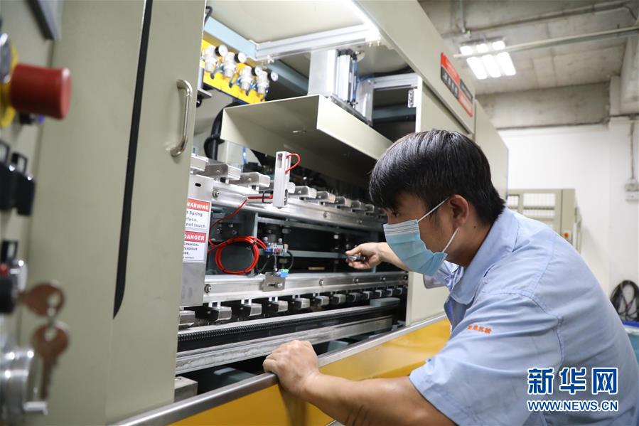 工人在广州市联柔机械设备有限公司车间检修设备(9月24日摄)。 新华社记者 李嘉乐 摄
