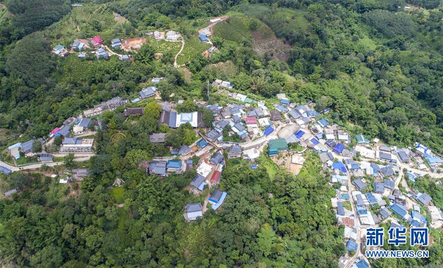 这是位于云南西双版纳傣族自治州的基诺山基诺族乡巴亚村委会巴坡村小组基诺山寨(无人机照片,8月13日摄)。 新华社发(陈欣波 摄)