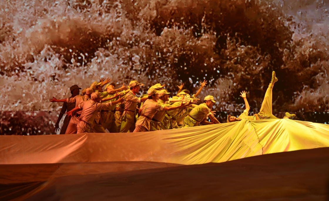这是10月8日晚在庆祝昌都解放70周年专场文艺晚会上拍摄的舞蹈《抢渡金沙江》。新华社记者 晋美多吉 摄
