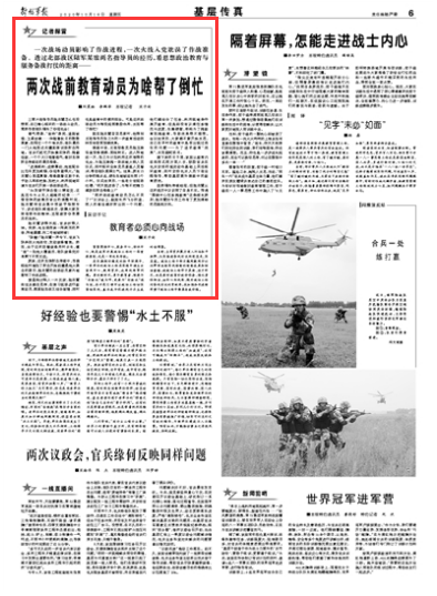 就在陈志慧苦苦思索时,他得知五连指导员张之为的一次教育活动同样没有收到预期效果。