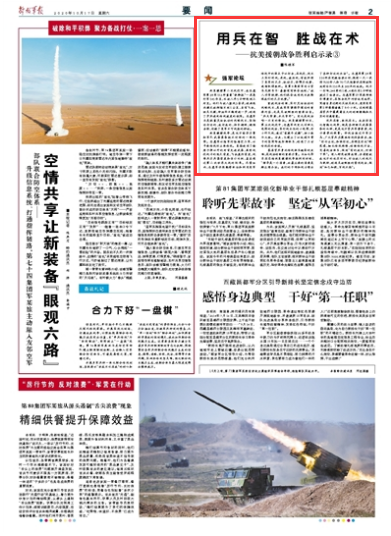 基层官兵身处作战体系链条的末端,是战法创新的重要力量。正如毛泽东在总结抗美援朝战争胜利时所说,“领导是一个因素,而最主要的因素是群众想办法。我们的干部和战士想出了各种打仗的办法”。志愿军第39军116师在突破临津江时,提前一天一夜将7500余人和70门火炮潜伏在距敌阵地前沿仅150米至300米的地段。战斗一打响,346团的1连、4连仅用5分钟就渡过了临津江。志愿军第27军某部班长谭秉云,在阻击战中巧妙运用地形,凭借自身过硬的反坦克技术,竟将美军第2师整整堵截了8个小时。这说明基层官兵中蕴藏着巨大的创新潜能和无穷的打赢智慧。
