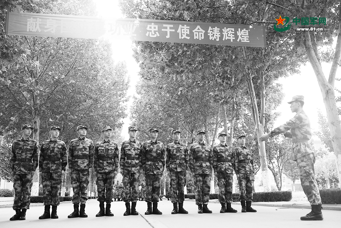 陆军第80集团军某旅新兵进行队列训练。