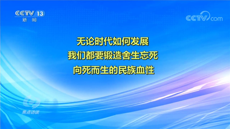 为什么战旗这样红,英雄的鲜血染红了它。英雄们说,我们的身后就是祖国,为了祖国人民的和平,我们不能后退一步!这种血性令敌人胆寒,让天地动容!习近平指出,无论时代如何发展,我们都要锻造舍生忘死、向死而生的民族血性。