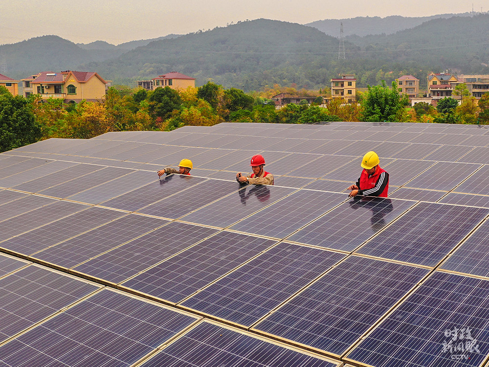 △江西吉安黄岗村,供电公司工人正在检修“光伏+取暖”设备,保障村民温暖过冬。