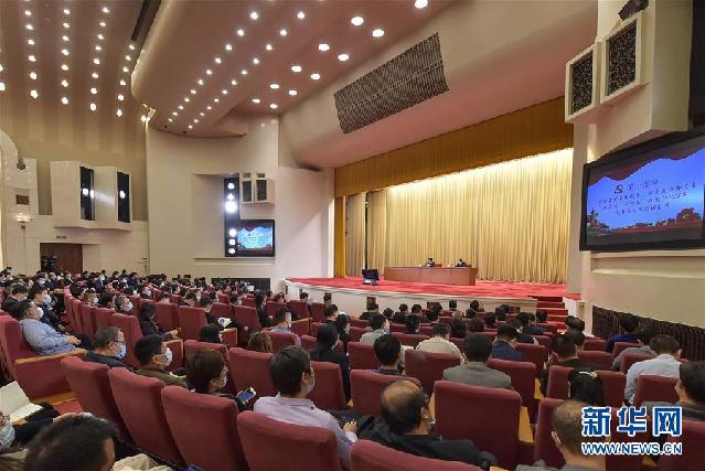 11月7日上午,中央宣传部、中央和国家机关工委、教育部、中央军委政治工作部、中共北京市委在北京举办学习贯彻党的十九届五中全会精神中央宣讲团首场报告会。中央宣讲团成员、中央财经委员会办公室分管日常工作的副主任韩文秀作宣讲报告。新华社记者 李贺 摄