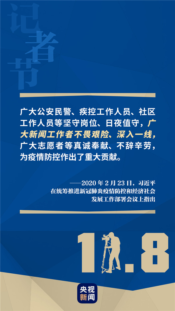 注定不平凡的2020年,让这个记者节显得格外不同。在惊心动魄的战“疫”一线,在决战脱贫攻坚战场,在奋进新时代、开启新征程的各个领域,百万新闻工作者记录着奋发昂扬的中国不平凡的步伐。
