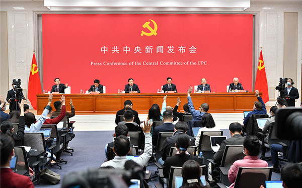 △2020年10月30日,中共中央在北京举行新闻发布会,介绍党的十九届五中全会精神,并答记者问。