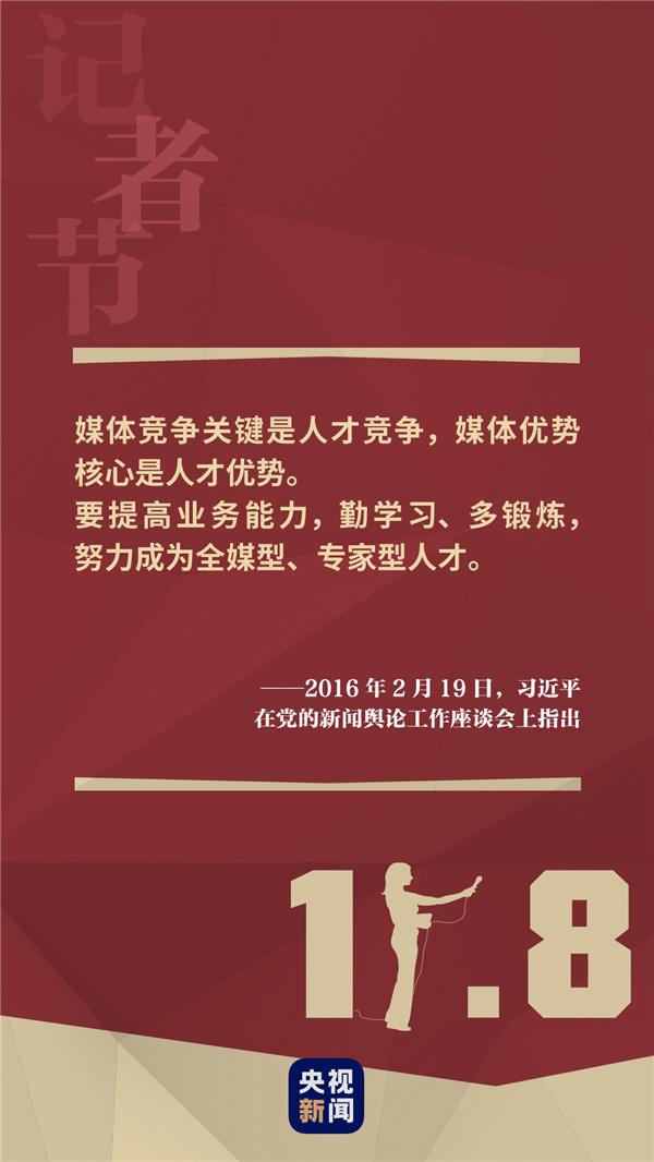“坚定‘四个自信’,保持人民情怀,记录伟大时代,讲好中国故事,传播中国声音,唱响奋进凯歌,凝聚民族力量”,是总书记对广大新闻工作者提出的殷殷嘱托。