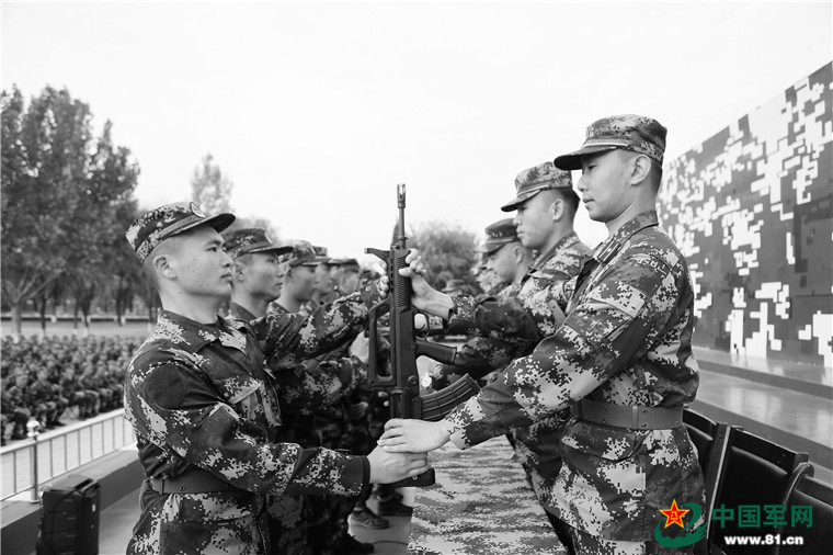 10月29日,武警天津总队新兵团为新战士举行授枪仪式。秦梓航摄
