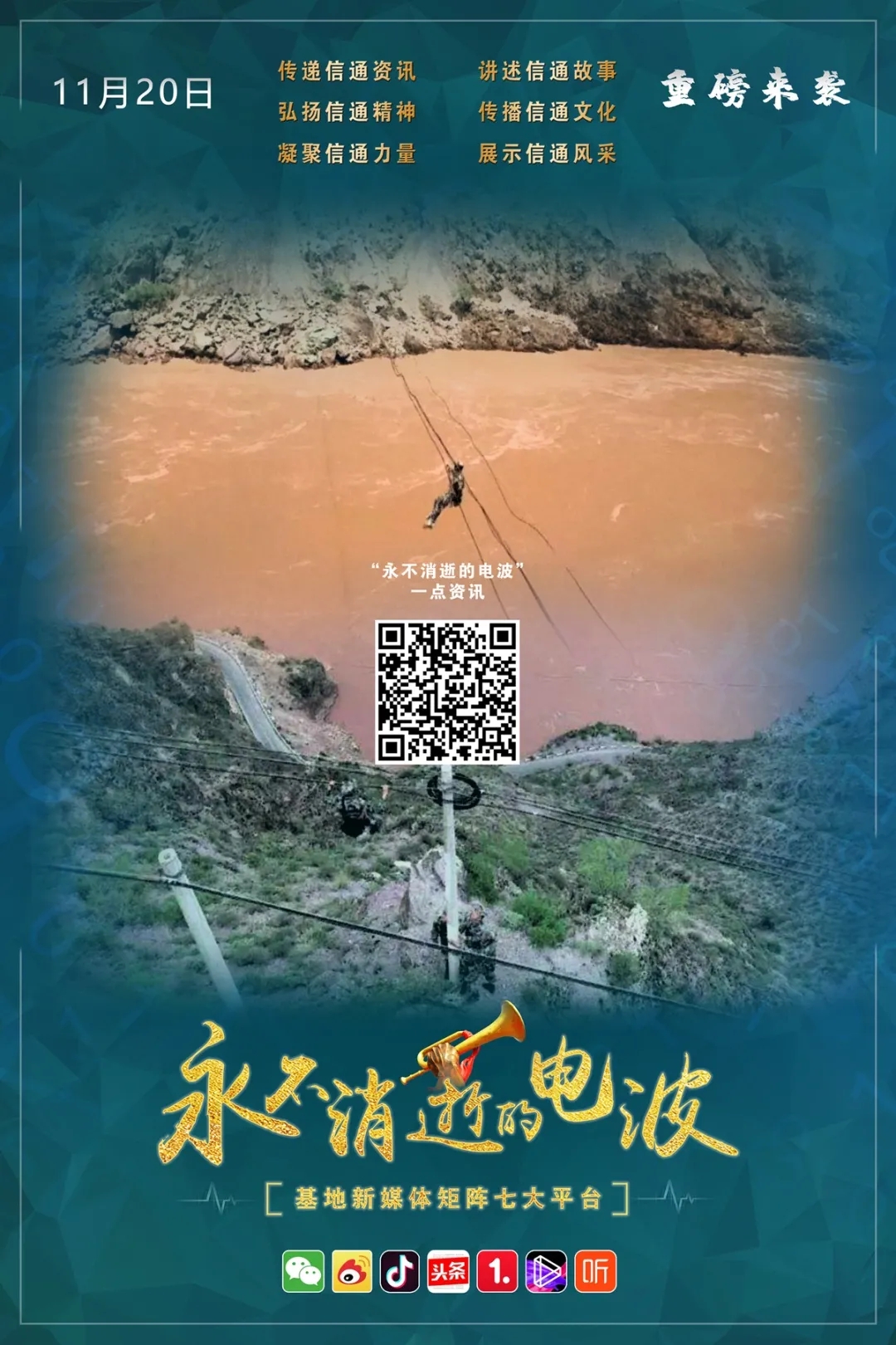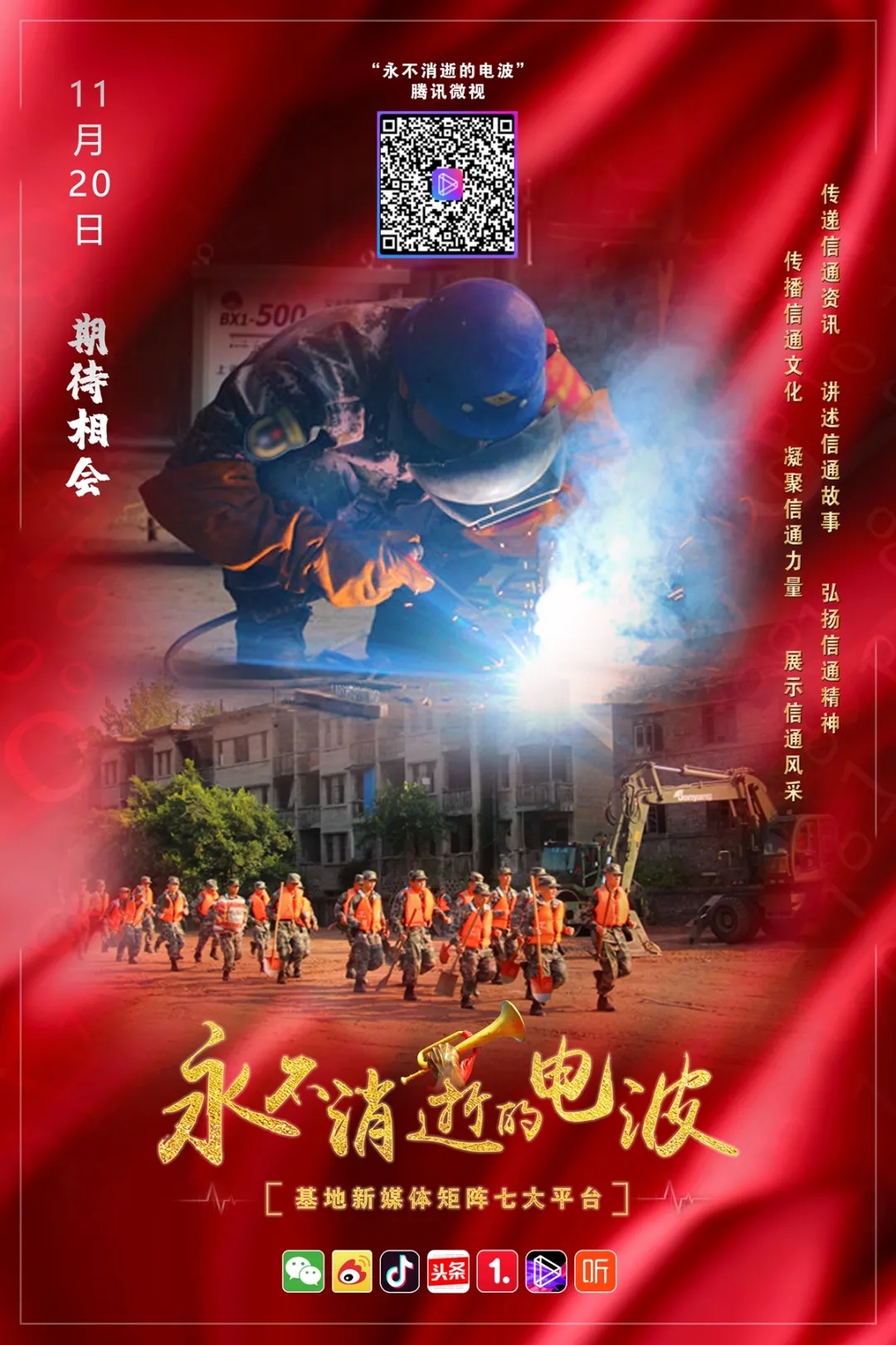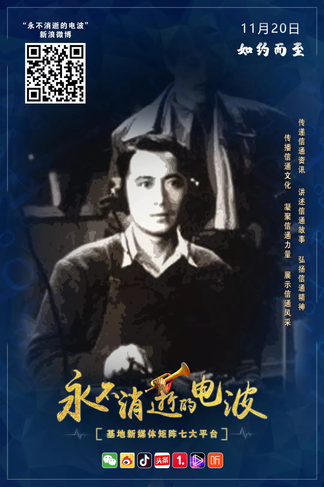 今天,我们在七大新媒体平台传承红色基因,赓续信通血脉,讲述咱通信兵自己的故事,让电波永不消逝。