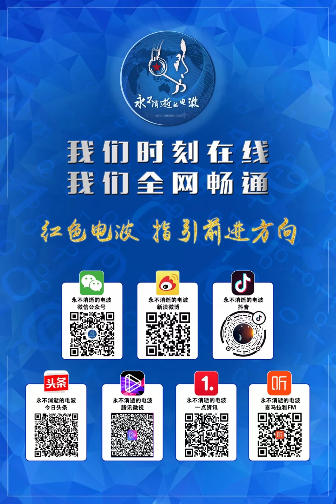 100年后的今天,由中国人民解放军61001部队官方认证授权的“永不消逝的电波”,正式开通入驻新媒体七大平台,从此,人民通信兵的时代风采通过红色电波传遍世界。