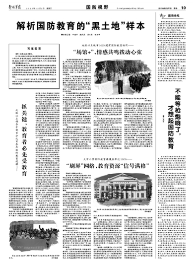 行文至此,记者想起了二战时期的一段历史:法国不重视抓国防教育,结果战争爆发不久就吞下失败的苦果。而同为欧洲国家的瑞士,则始终高度重视国防教育。当时,在获悉德国准备进攻的消息后,只有400万人口的瑞士就有50万人报名参战,致使希特勒放弃了吞并瑞士的“冷杉行动”。