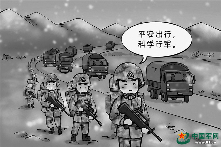 解放军第950医院普外科主任吕立远:冬季道路积冰积雪,险难路段增多,一些通往山隘、要点的小路通行困难。无论摩托化行军还是徒步行军,都存在一定的安全风险。如果处置不当,可能发生滑倒扭伤,车辆侧滑、侧翻,甚至跌落路基、摔下深谷等意外伤害。官兵在山脊一线、山隘口等地点巡逻、机动时,还可能遭遇冰雹、风吹雪、大雾等恶劣天气,应对不力易造成人员受伤、装备受损。此外,军事作业过程中,短时间内提升海拔与急进高原情况类似,如不做好预适应或防病准备,易诱发高原反应或急性高原病。行军时道路崎岖,关节与肌肉处于不稳和紧张状态,能量与氧耗增大,人体极易疲劳,如不科学有效防风保暖、休息调整,易诱发感冒。因此,冬季高原行军要做好行军前准备、行军中防护,行军后调整3个方面的工作。