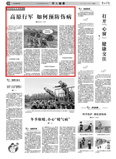 进行防病教育。不少战友初次上高原,虽然完成了高原习服,但没有高原过冬经验,对恶劣自然环境给人体机能和装备性能造成的不利影响认识不足。行军前,部队卫生人员可对官兵进行高原行军卫生防病教育。分队可学习借鉴边防部队高原驻防过冬经验,编写通俗易懂的高原行军卫生防病常识手册;以班、组为基础,编成若干行军互助小组,将新老兵穿插安排。官兵出发前要做好个人准备,检查防护物资。