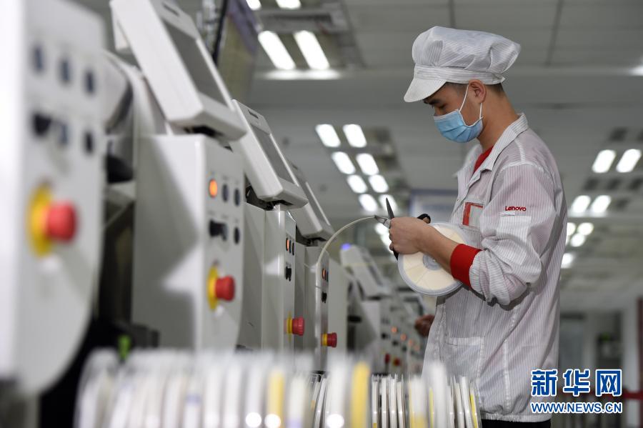 工作人员在联宝(合肥)电子科技有限公司生产车间内忙碌(3月5日摄)。新华社记者 周牧 摄
