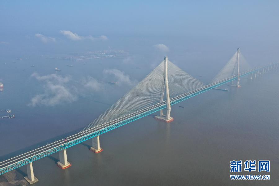 沪苏通长江公铁大桥(6月30日摄,无人机照片)。新华社记者 季春鹏 摄