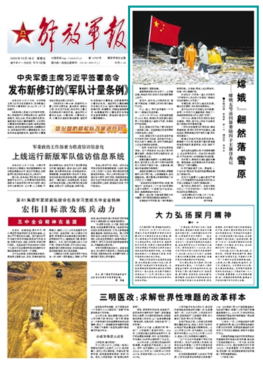 历时23天,12月17日1时59分,嫦娥五号返回器携带月球样品在内蒙古四子王旗预定区域安全着陆,探月工程嫦娥五号任务取得圆满成功。习主席发来贺电,代表党中央、国务院和中央军委,向探月工程任务指挥部并参加嫦娥五号任务的全体同志致以热烈的祝贺和诚挚的问候。这必将激励我国航天人为建设航天强国、实现中国梦作出新的更大贡献。