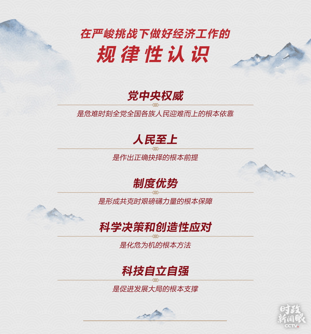 会议要求,做好明年经济工作,要以习近平新时代中国特色社会主义思想为指导,全面贯彻党的十九大和十九届二中、三中、四中、五中全会精神。《时政新闻眼》发现,每年中央经济工作会议提出的指导思想既一脉相承,又与时俱进。今年的一些新表述,比如“立足新发展阶段,贯彻新发展理念,构建新发展格局,以推动高质量发展为主题,以深化供给侧结构性改革为主线,以改革创新为根本动力,以满足人民日益增长的美好生活需要为根本目的”,就鲜明体现了今年10月召开的十九届五中全会精神。