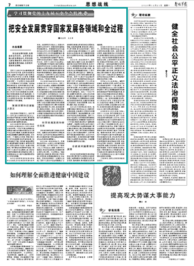 安全发展关乎国家兴亡。站在“两个一百年”奋斗目标的历史交汇点上,面对复杂严峻的国内外形势,要用更高的战略眼光、更远的战略考量来理解把握安全发展的重要性紧迫性。