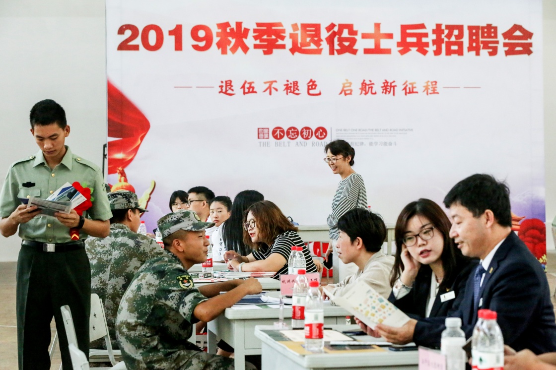 陆军第72集团军某旅与地方政府合作举行秋季退役士兵招聘会(2019年8月30日摄)。新华社发(庄林毅 摄)
