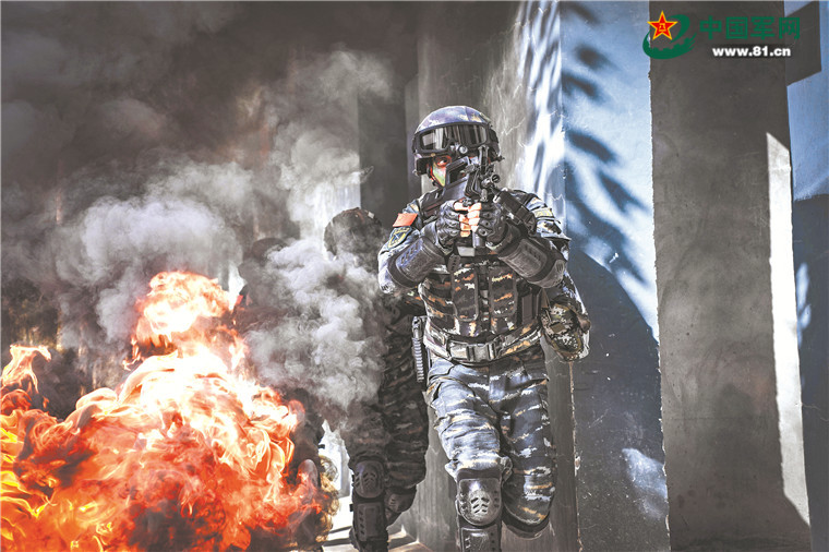只见特战队员在高低不平的山路上奔袭3000米,相继通过双绳水池、轮胎墙、软梯斜绳、高墙、低桩网等8个障碍物,而后在攀登楼一侧完成高层建筑物现场侦察,最终穿过80米模拟街区,完成突入识别、搜索射击。