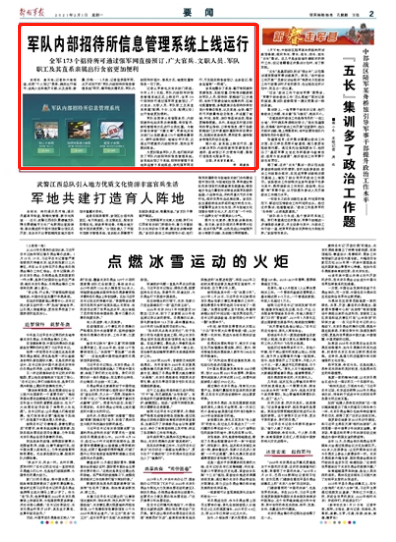 据介绍,该系统上线运行后,重点解决军队内部招接待资源信息不透明、查询预订不方便等问题,集智打造信息化服务平台。