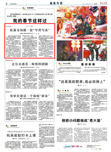 “有了!”想到这儿,我突然萌生了一个想法:利用7天假期,给每个战友拍一套“军营写真”,以此纪念这个不寻常的春节。对,就这么干!
