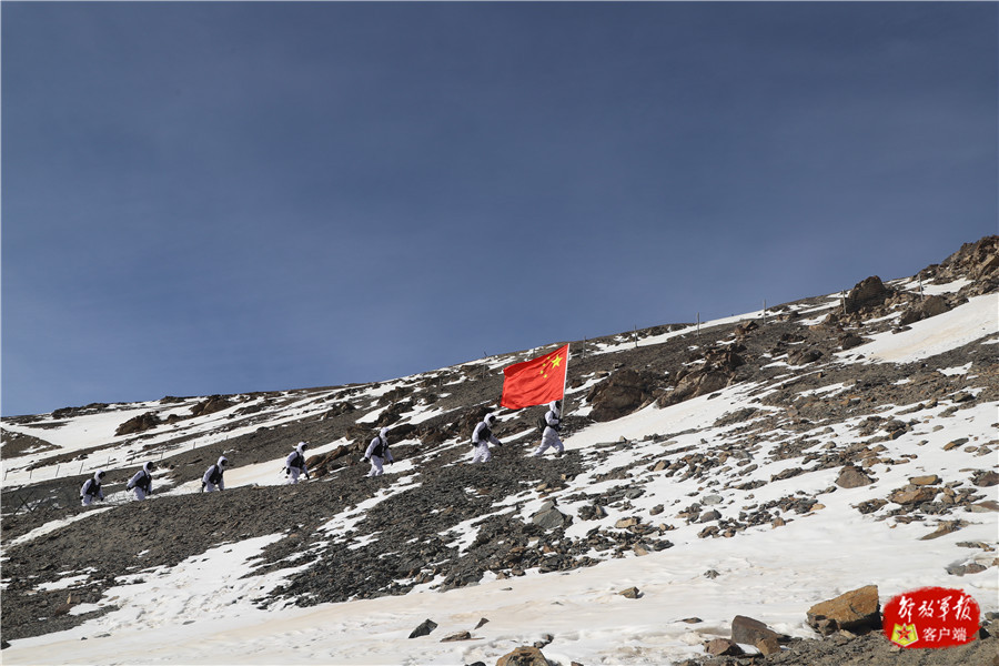 1个小时后,官兵们到达了天梯下面,这是前往3号界碑的必经之路。四千多米的海拔,凛冽的寒风,对于官兵们来说,不仅是体能的考验,更是意志力的极大挑战。