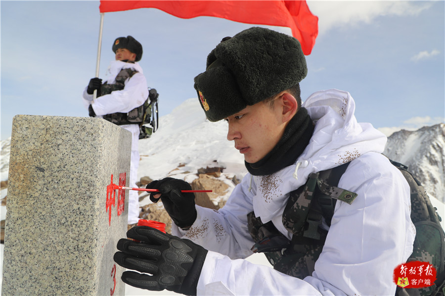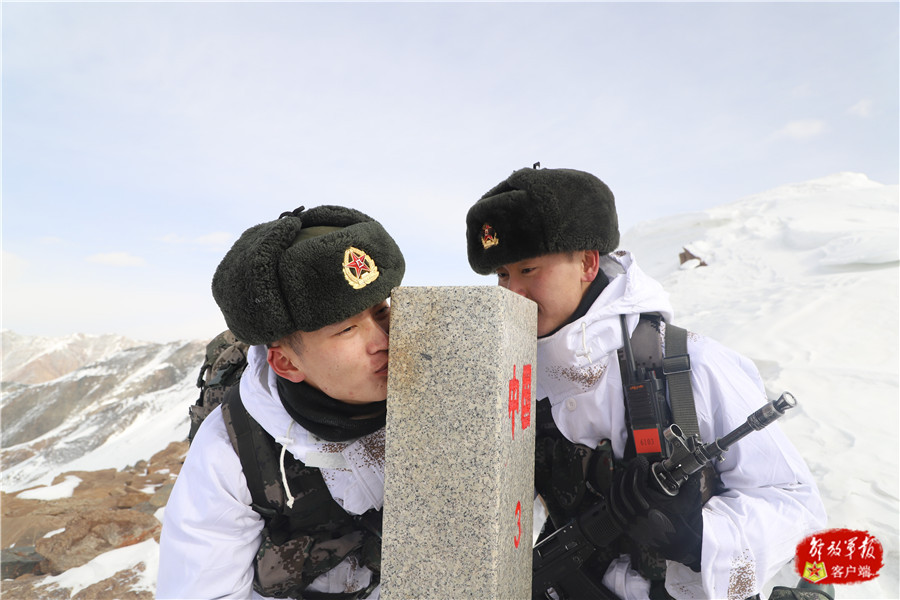 当看到界碑,官兵们忘却了所有的疲惫,他们冲向界碑,擦拭、拥抱、亲吻着。看着“中国”二字,官兵们有种无法言喻的情感,因为它见证了一代又一代边防军人爬冰卧雪的身影,记录了他们一次又一次的铮铮誓言。