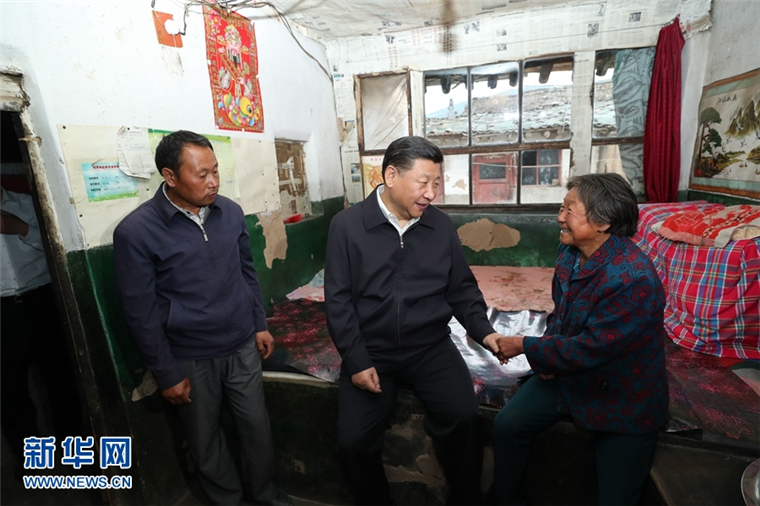 2017年6月21日至23日,中共中央总书记、国家主席、中央军委主席习近平在山西考察。这是6月21日下午,习近平到忻州市岢岚县赵家洼村特困户王三女家中看望。新华社记者 庞兴雷 摄