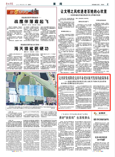 《关于新时代支持革命老区振兴发展的意见》作为一份综合性、系统性的文件,聚焦解决革命老区高质量发展面临的共性问题,遵循统筹谋划、因地制宜、各扬所长的基本原则,提出了一系列目标任务和支持政策,完善了新发展阶段支持革命老区振兴发展的政策体系。
