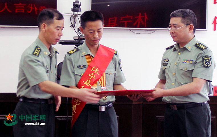 中国军网7月25日电 7月24日上午,从安徽省休宁县征兵办公室传来喜讯,第二炮兵某部一级军士长王忠心接受家乡征兵形象代言人的聘请。