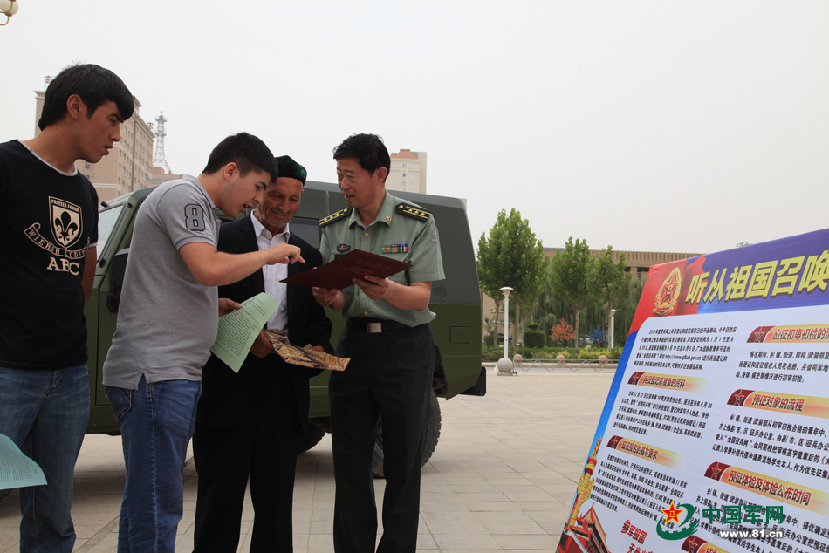 向驻地群众宣传讲解大学生入伍的优惠政策。