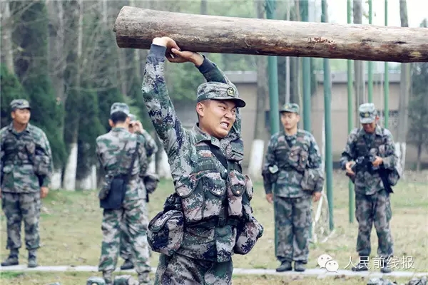 ▲举圆木。为什么看电视上的军营猛男举这个跟玩儿一样,我强烈不服,等着吧,我一定征服你!