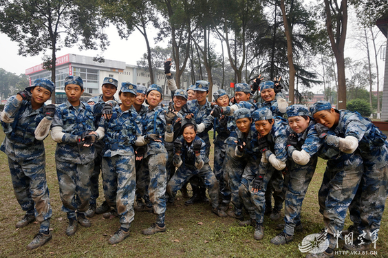 11月23日打靶,河北籍女兵白旭佳稳稳端着自己的半自动步枪,屏住呼吸,一枪一枪扣动扳机。49环!当对讲机里传出报靶员的声音,全场沸腾,女兵们欢呼雀跃,男兵也纷纷鼓掌叫好。5发子弹49环,这是全旅新兵打出的最好成绩,女兵连也以平均40环的好成绩勇夺第一。