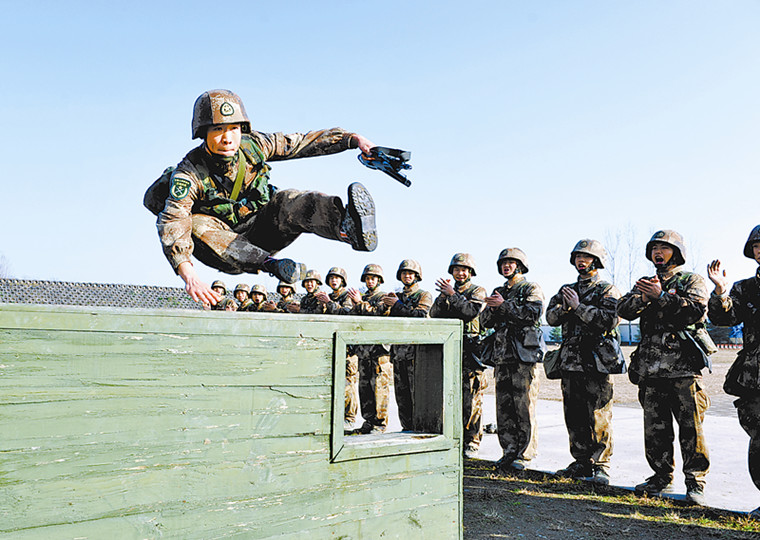 12月初,兰州军区某团新兵一连下士班长李晓伟为新兵做示范虎虎生威。在他的带领下,3名新战士分别刷新了该部个人3公里越野、引体向上、手榴弹投掷课目的纪录。