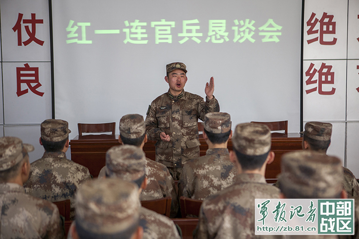 红一连副指导员郝晓名组织召开官兵恳谈会。韩理 摄