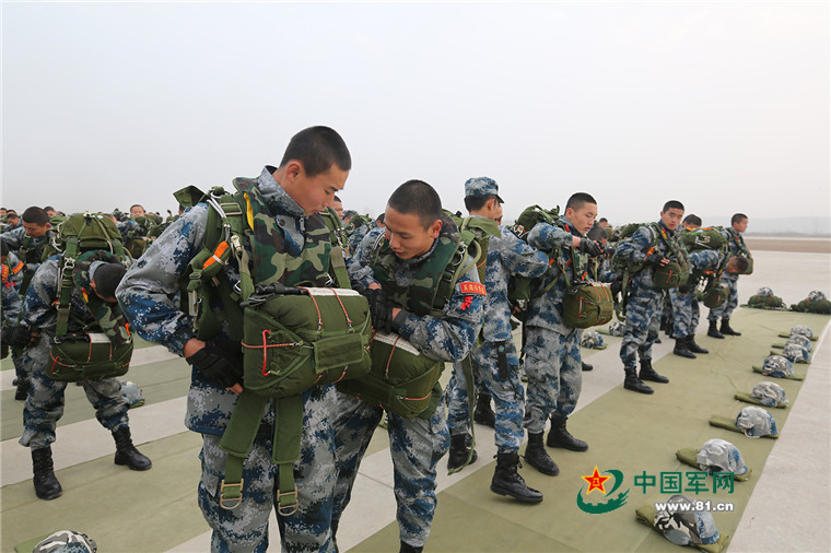 新兵们协同背伞