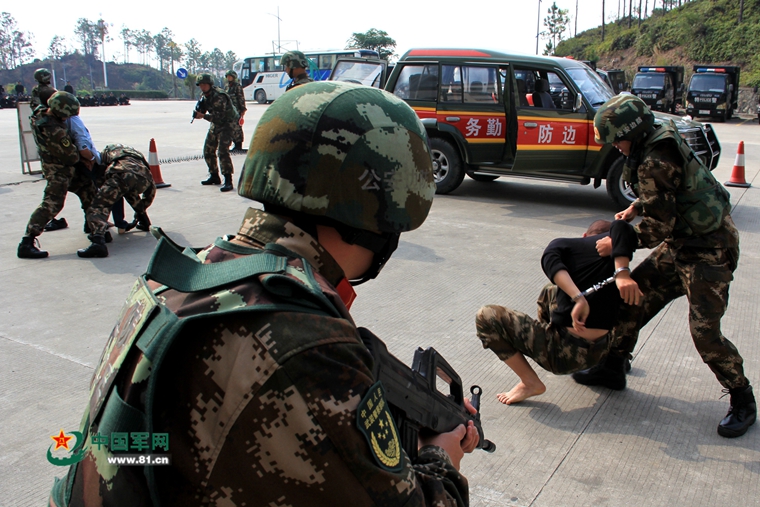 新兵们演示车辆查缉课目