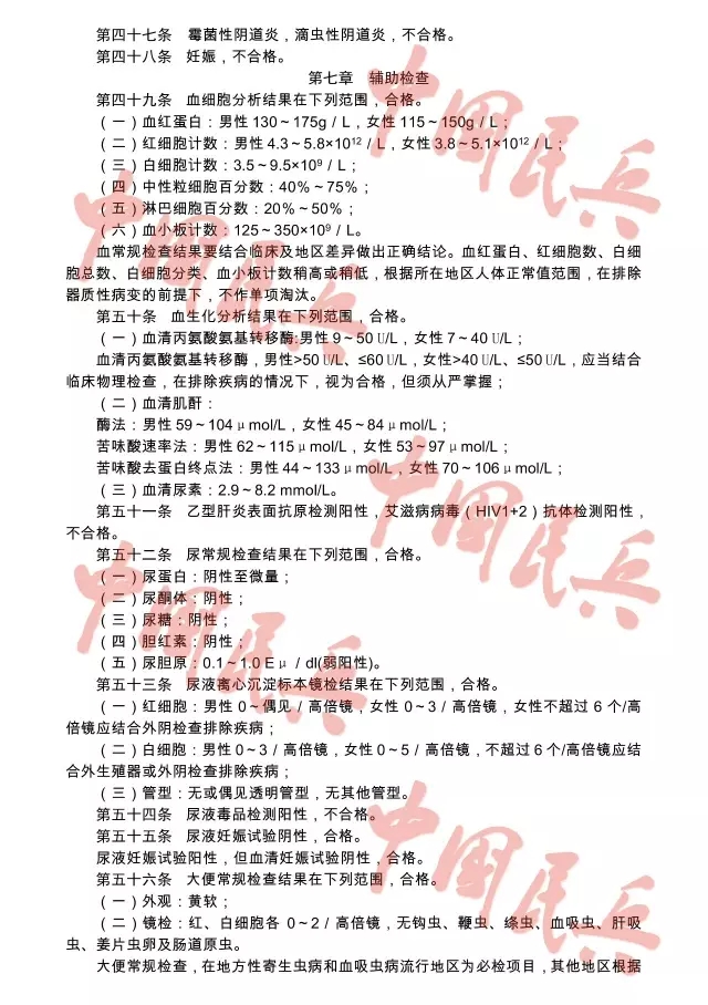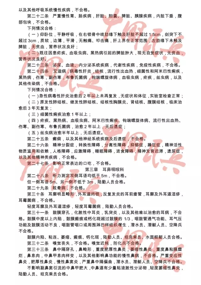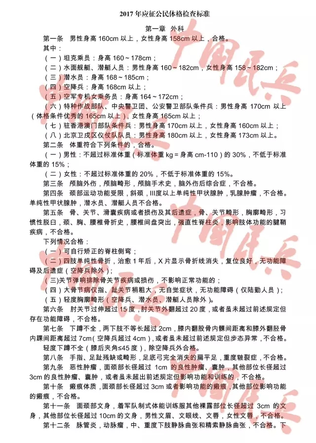 附:2017年应征公民体格检查标准