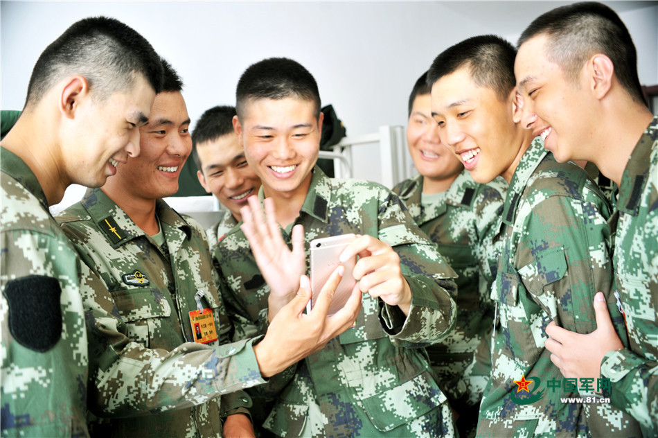 新战士们用排长怀卫国的手机,与家人视频聊天。