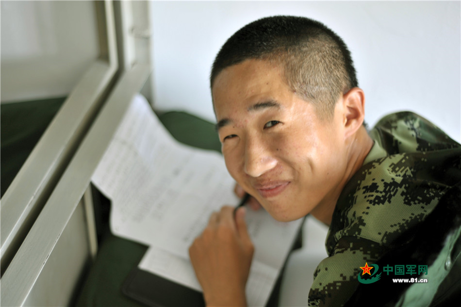 午睡前,新战士拿出纸笔,给家人写信。因为离开了手机,这是他第一次写信。