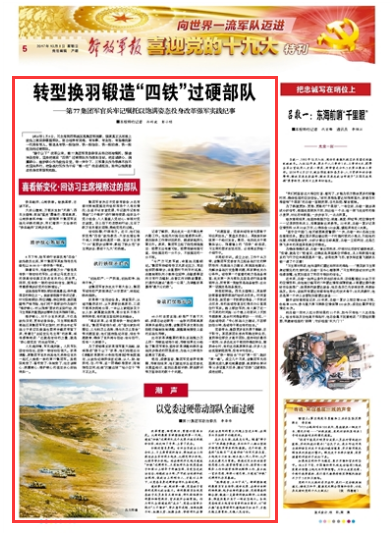 以“铁一般担当”干好“第一任”、跑好“第一棒”。成立几个月来,该集团军先后圆满完成九寨沟地震救援、高原联合演训等10多项重大任务,建设“四铁”过硬部队成效初现。