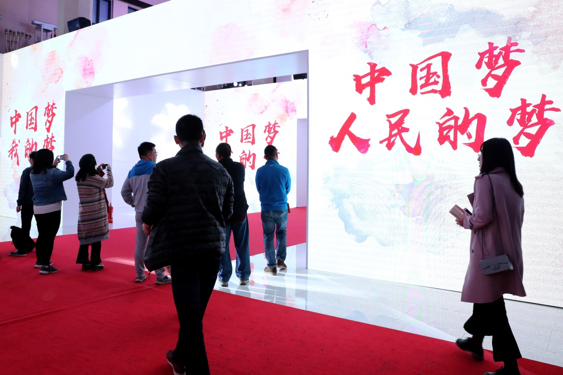 10月12日,观众在北京“砥砺奋进的五年”大型成就展上参观。 新华社记者 张玉薇 摄