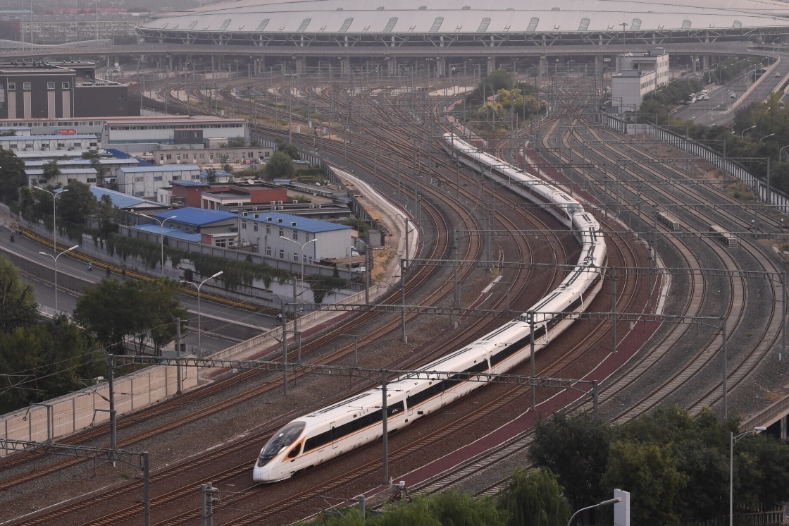 9月21日,一列“复兴号”列车驶出北京南站。新华社记者 李贺 摄