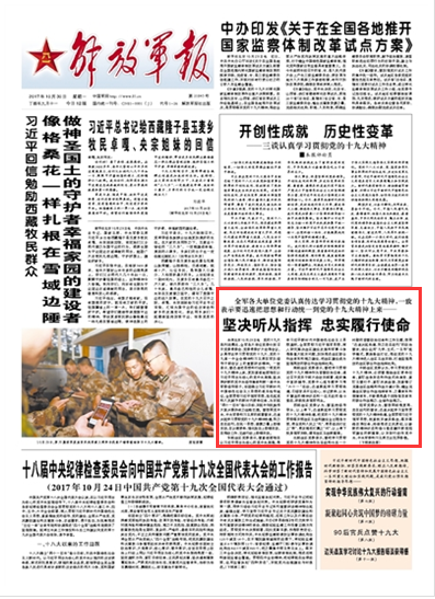 全军各大单位党委一致表示要认真传达学习贯彻党的十九大精神