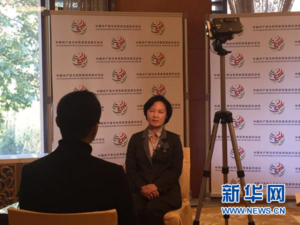 图为韩国执政党共同民主党党首秋美爱在接受采访。新华网记者 毕秋兰 摄
