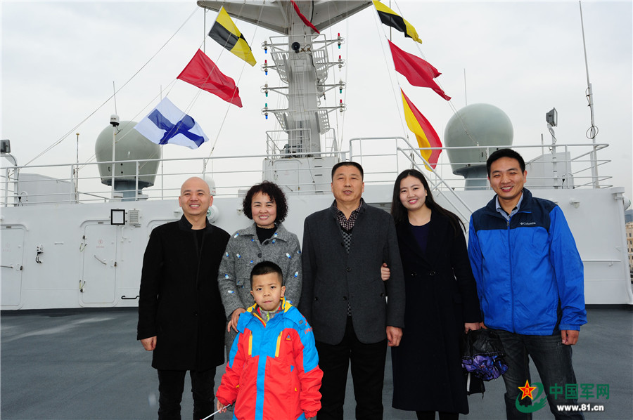 12月28日,圆满完成“和谐使命-2017”任务的中国海军和平方舟医院船驶抵浙江舟山某军港码头后,海军官兵与家人幸福团聚。江山摄